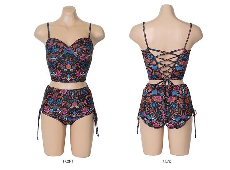 小花柄の水着 花柄 レトロ ビキニ ビスチェ レースアップ ハイウエスト 体型カバー きれいめ セクシー スポーティー 夏 ビーチ 海 プール リゾート RB-I07-0006