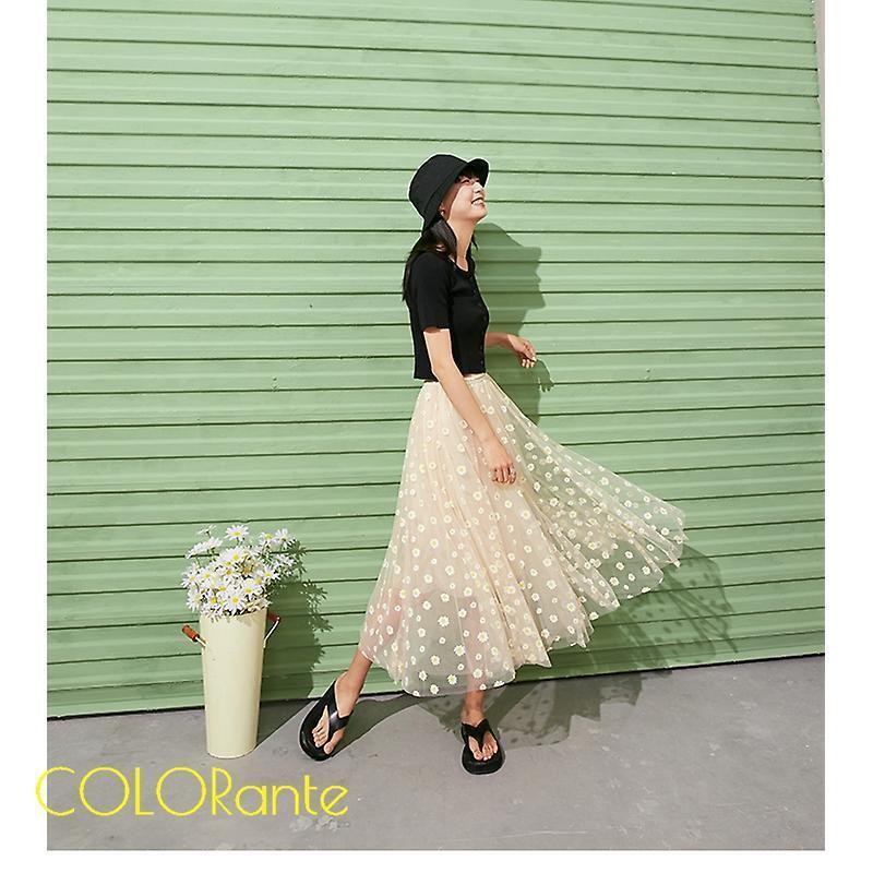 小花柄のスカート スカート 花柄 レトロ チュール デイジー ガーリー ひざ下丈 ウエストゴム RB-S07-0026