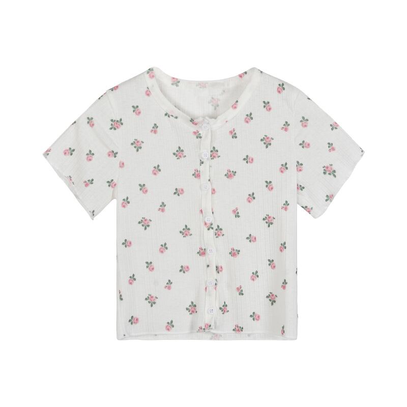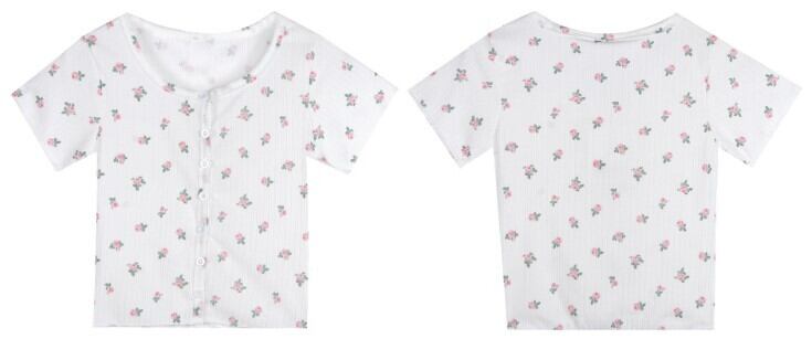 小花柄のトップス 花柄 レトロ 半袖 Tシャツ カーディガン フロントボタン スリム ショート丈 丈短 へそ出し カジュアル セクシー かわいい ヘルシー お出かけ デート 夏 RB-A07-0091