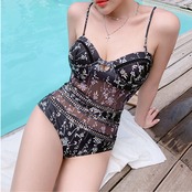 小花柄の水着 花柄 レトロ ワンピース水着 オールインワン モノキニ 体型カバー ブラック ガーリー フェミニン きれいめ 上品 夏 ビーチ 海 プール リゾート RB-I07-0012