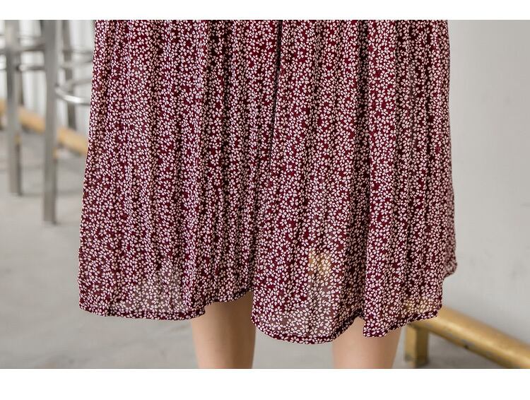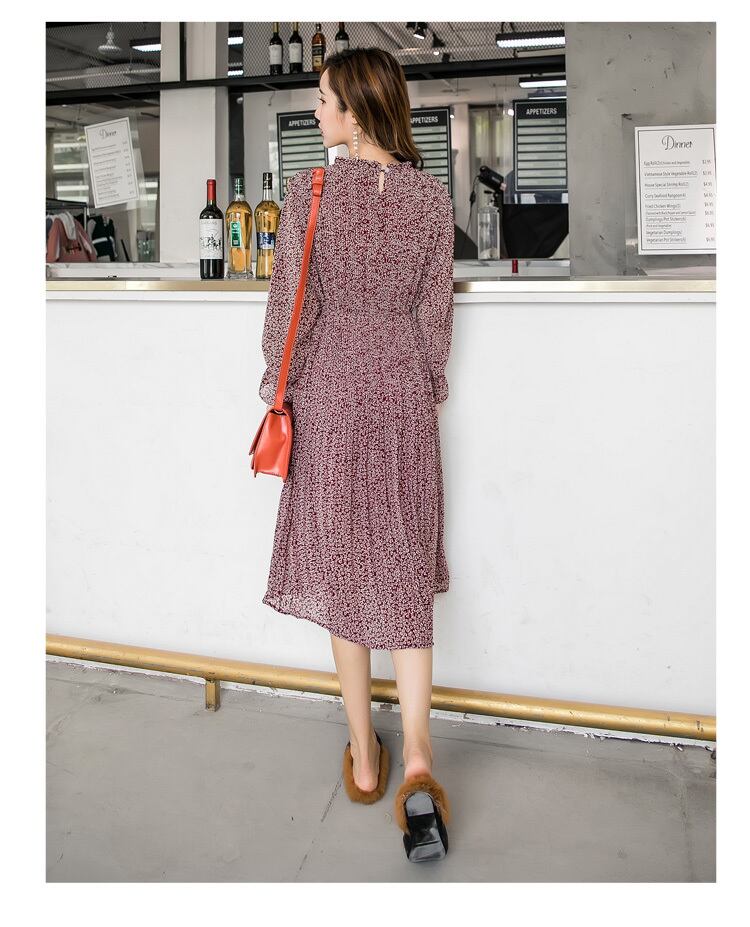 小花柄のプリーツワンピース プリーツワンピース 花柄 レトロ S M L XL 2XL 大きいサイズ ピンク ワインレッド レディース 10代 20代 30代 アラサー Aライン カジュアル ハイウエスト 脚長効果 シフォン 膝丈 長袖 フリル袖 フレア ボトルネック フリル 上品 大人 大人可愛い お呼ばれ デート オフィス お出かけ RB-Z07-00019RB-Z07-00019