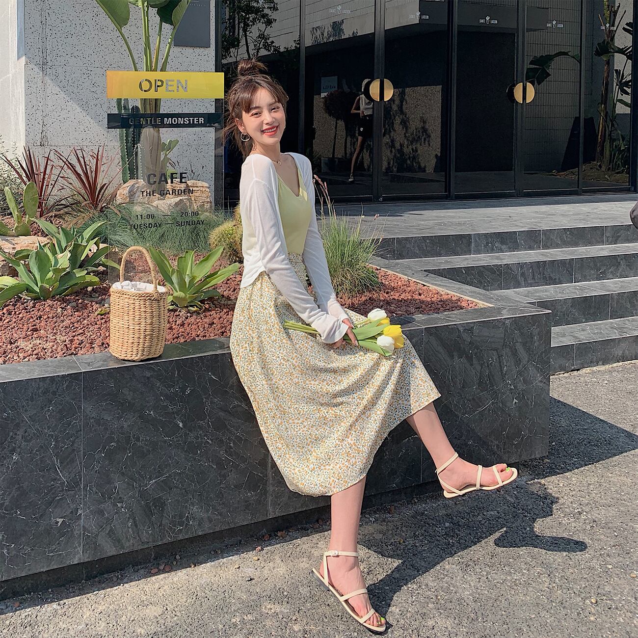 小花柄のスカート スカート 花柄 レトロ ハイウエスト ひざ下丈 ミモレ丈 ガーリー フレア RB-S07-0032