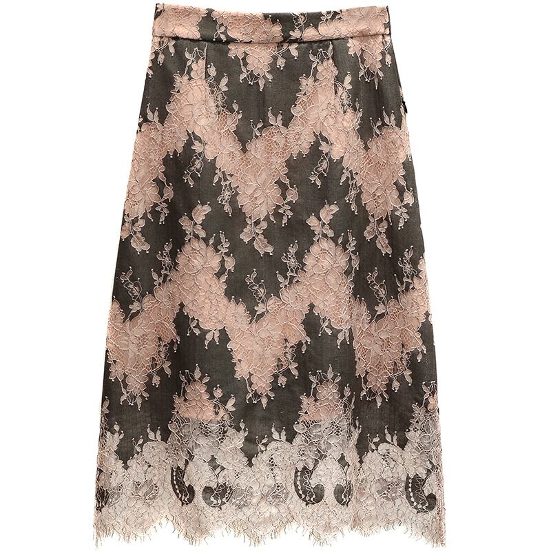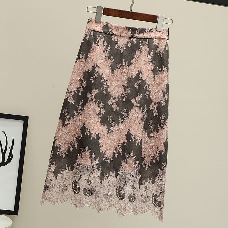小花柄のスカート スカート 花柄 レトロ レース バイカラー ハイウエスト タイト オフィス エレガント ひざ下丈 RB-S07-0039