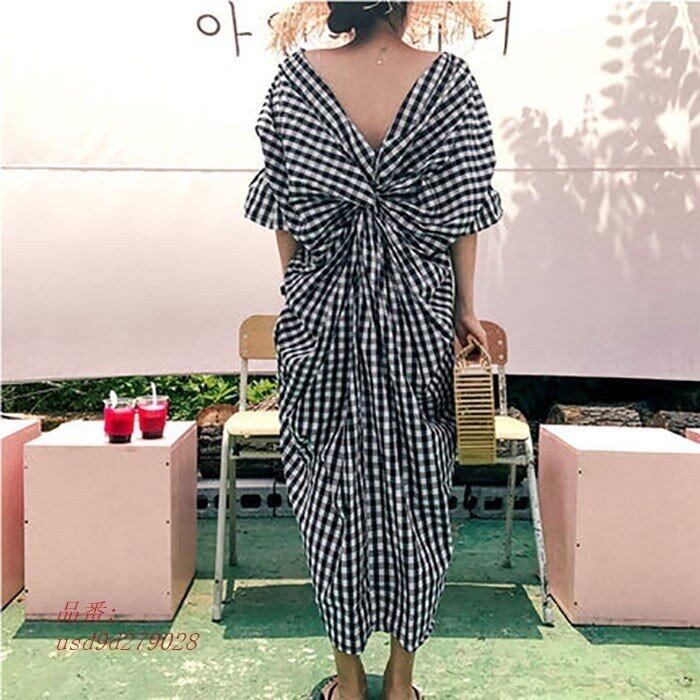 バックリボン 背中あき セクシー 大人可愛い ギンガムチェック おしゃれ きれいめ タイト RB-K07-0016