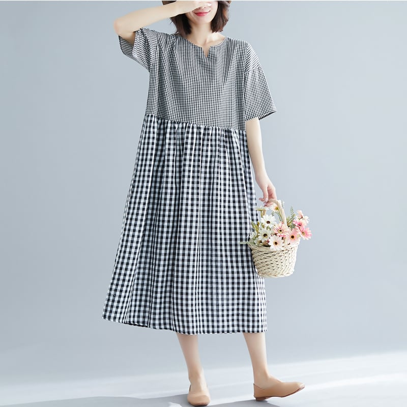 ふんわり チェック柄 大人可愛い ゆったり 切り替え 半そで ギンガムチェック お出かけ きれいめ RB-K07-0035
