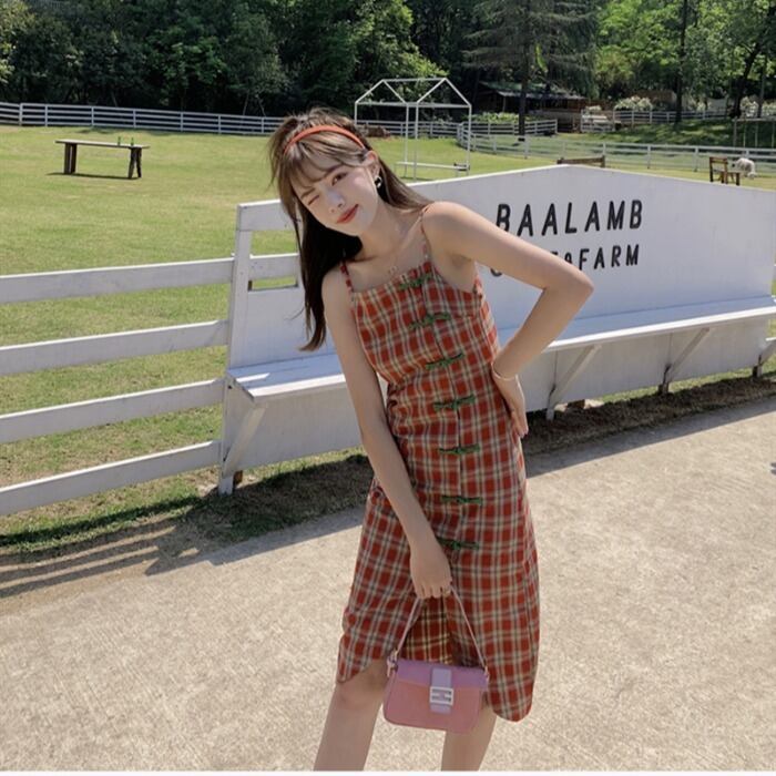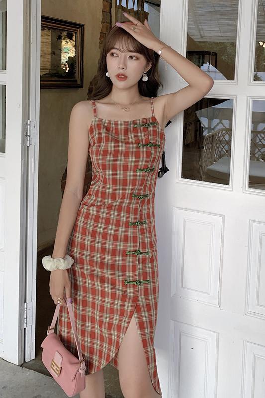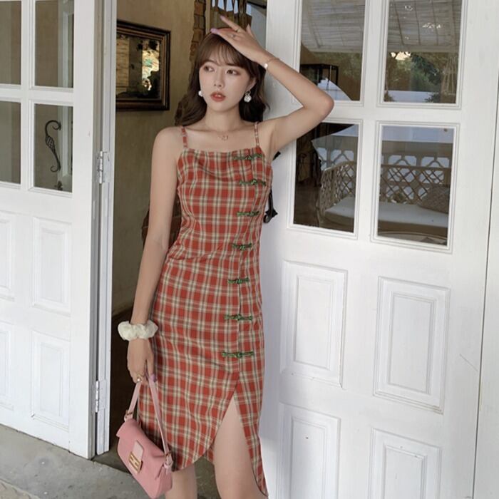 ハイウエスと ノースリーブ 薄手 Aライン チャイナドレス風 韓国風 体型カバー サマーワンピース 個性的 セクシー RB-K07-0045