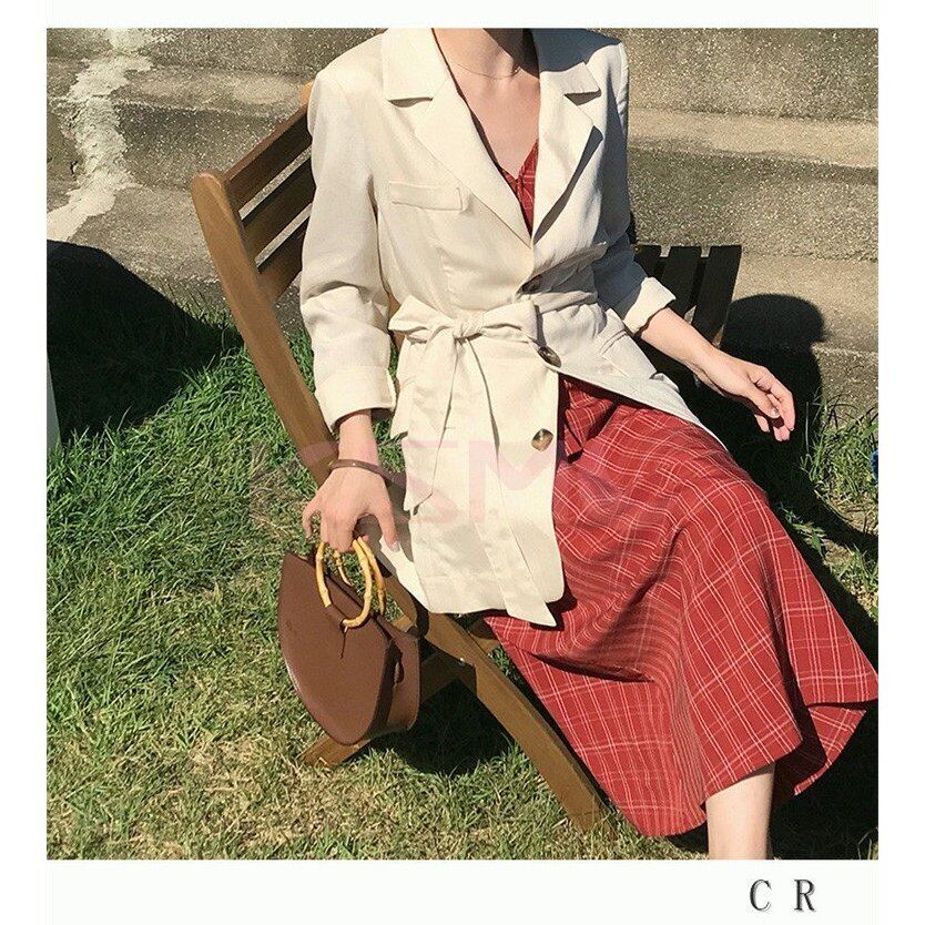 Vネック チェック柄 OL ベルトつき おしゃれ 通勤 フォーマル 大人かわいい 長袖 二次会 RB-K09-0006