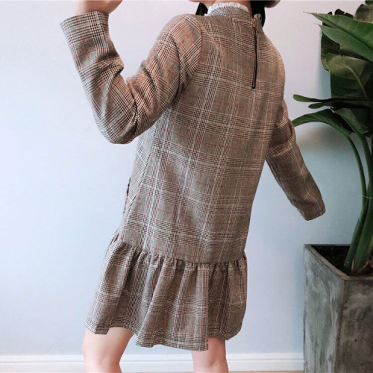 大きいサイズ 重ね着風 チュニックワンピ チェック柄 ガーリー ふんわり 紅蓮 ゆったり 膝丈ワンピ RB-K09-0007