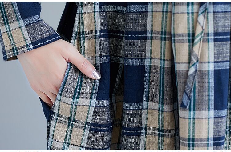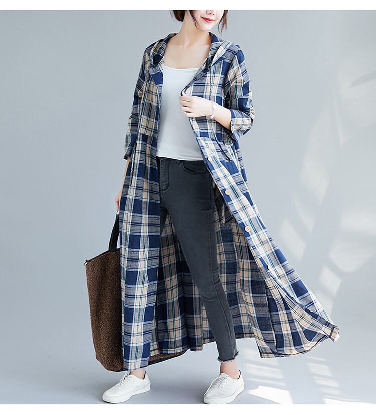 チェック柄 ロング アウター シャツワンピ カーディガン 2way ボタン フードつき ポケットつき RB-K09-0011