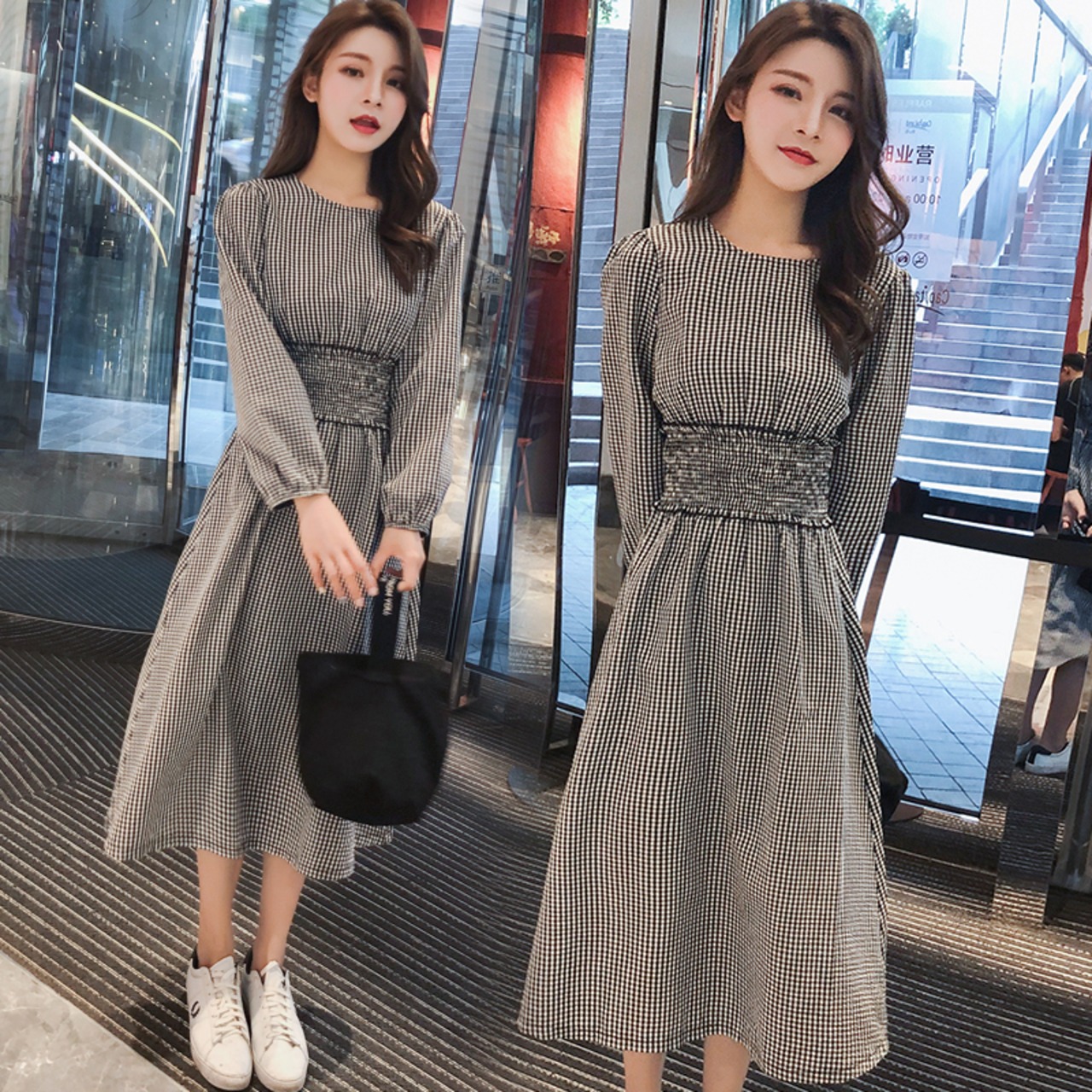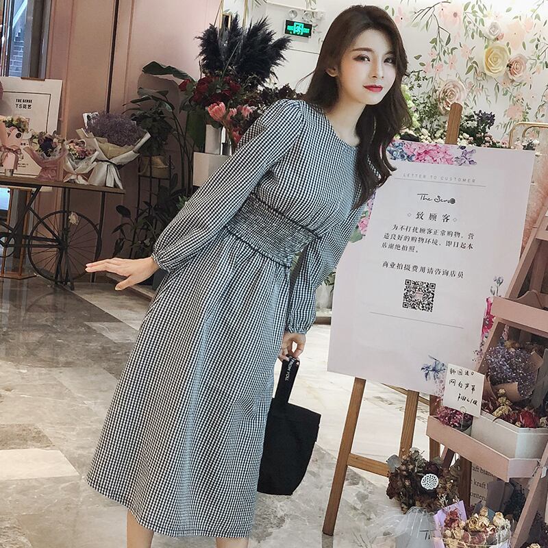 上品 チェック柄 体型カバー 着痩せ 落着き ゆったり 通勤 通学 デートお出かけ 長袖 RB-K09-0025