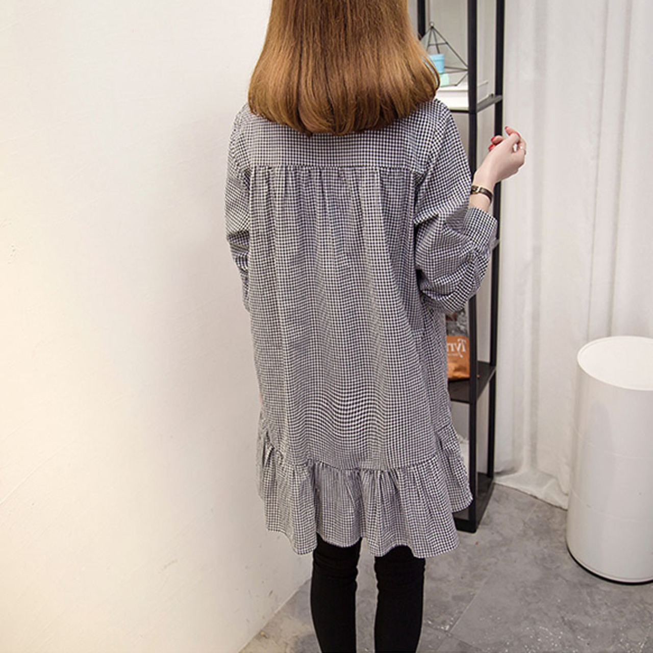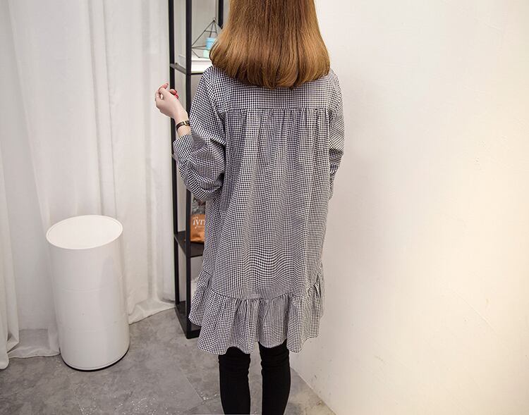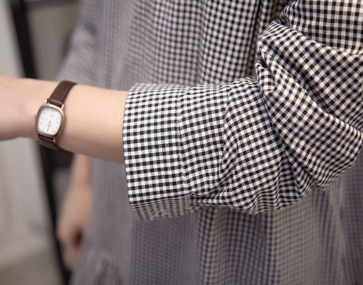 ギンガムチェック チュニック 七分袖 トップススモック 大きいサイズ 体型カバー 大人かわいい 通勤 通学 個性的 ボタン RB-K09-0032