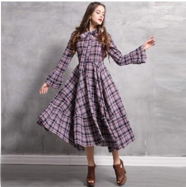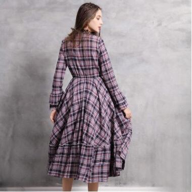 Aライン タータンチェック ふんわり 高級感 フレア 秋ワンピース マキシ丈 ロングワンピ 女性らしい きれいめ 綿 RB-K09-0037