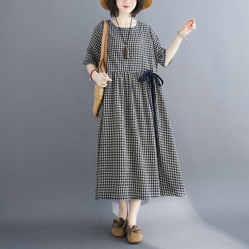 ロングワンピ ふんわり ギンガムチェック 体型カバー ガーリー 美スタイル 女性らしい きれいめ 落着き お出かけ 清楚 RB-K09-0042