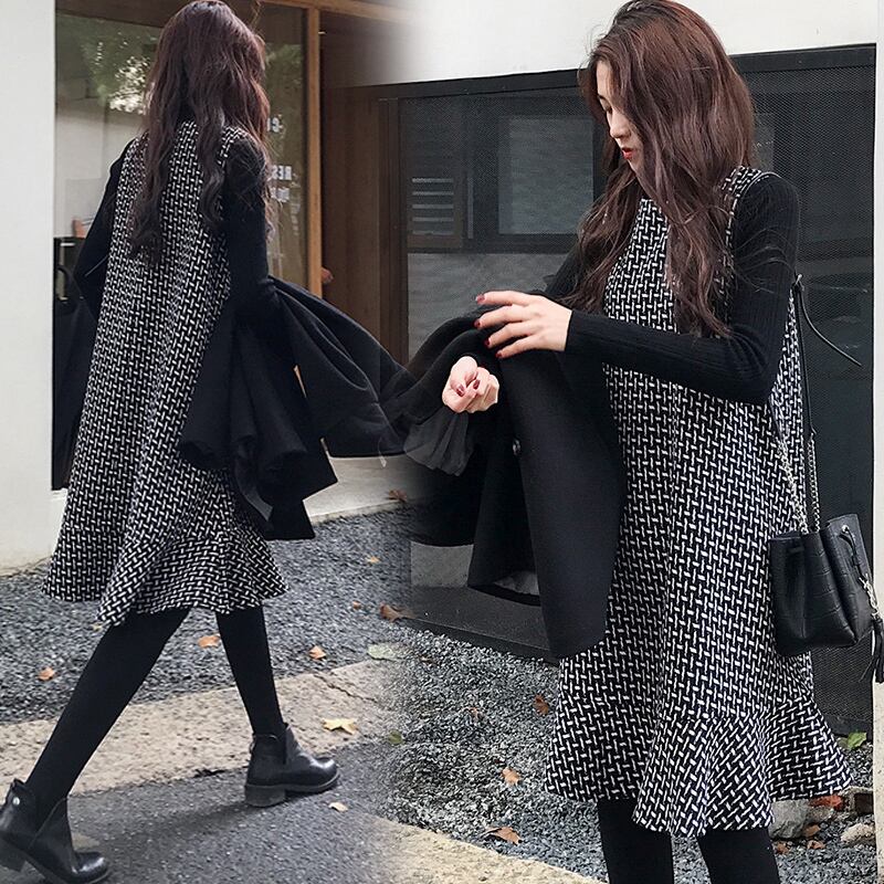 秋冬 チェック柄 ワンピース セットアップ 着痩せ 厚手 大きいサイズ 上品 デート お出かけ ふんわり RB-K09-0047
