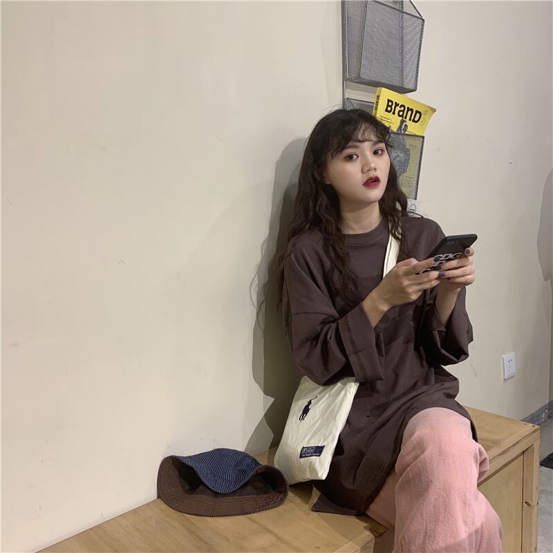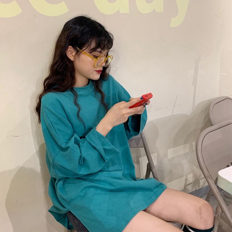 オーバーサイズ 長袖 Tシャツ チュニック ミニ丈 Tシャツワンピ サイドスリット ラウンドネック 無地 シンプル ゆったり ルーズ 普段着 デイリー カジュアル 春 秋 冬 RB-A09-0004