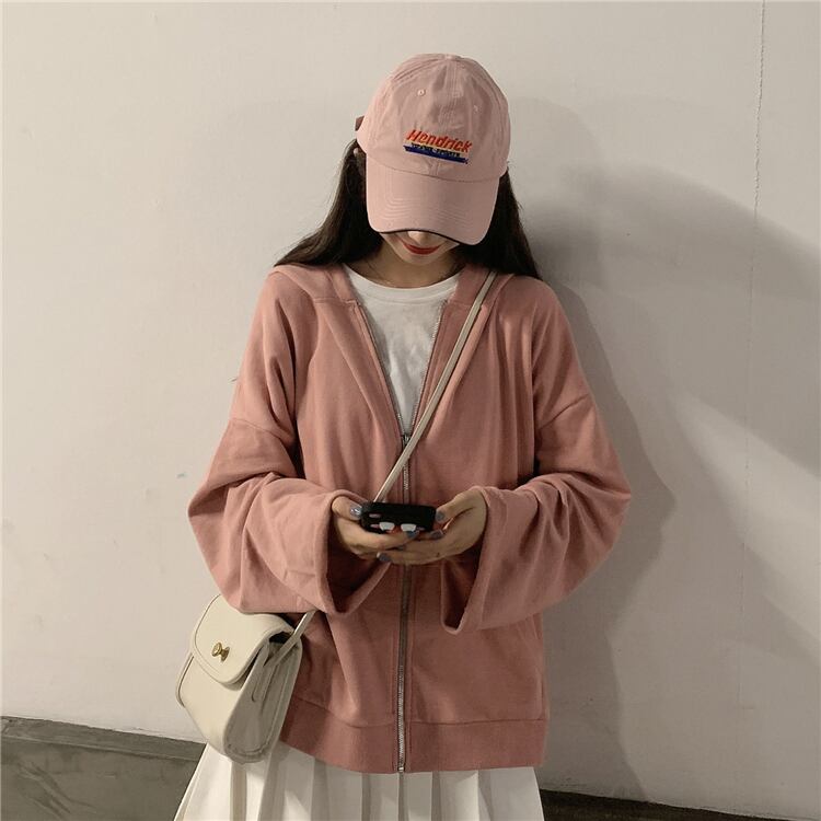 ジップアップパーカー フード付き ゆったり ルーズ サイドスリット 切りっぱなし ラフ カジュアル デイリー アウター お出かけ デート 通学 部屋着 春 秋 RB-A09-0005