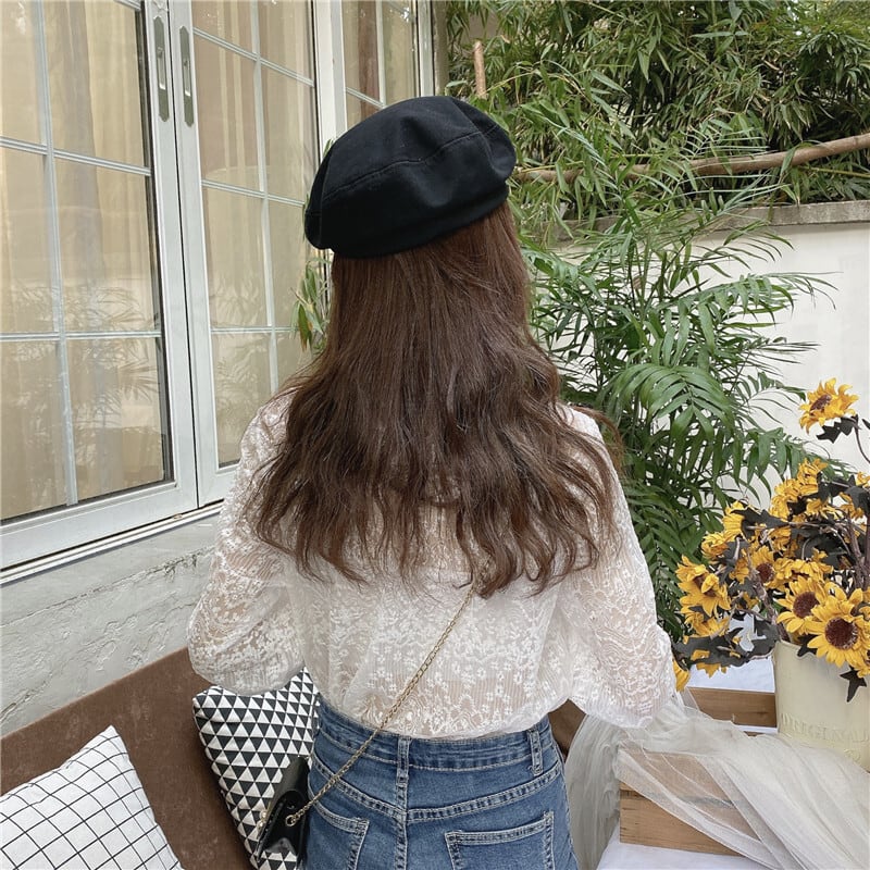 韓国風 レース ブラウス シャツ 長袖 スタンドカラー シースルー 透け感 トップス キャンディスリーブ レイヤード インナー 重ね着 エレガント ガーリー 甘トップス 春 秋 冬 RB-A09-0010