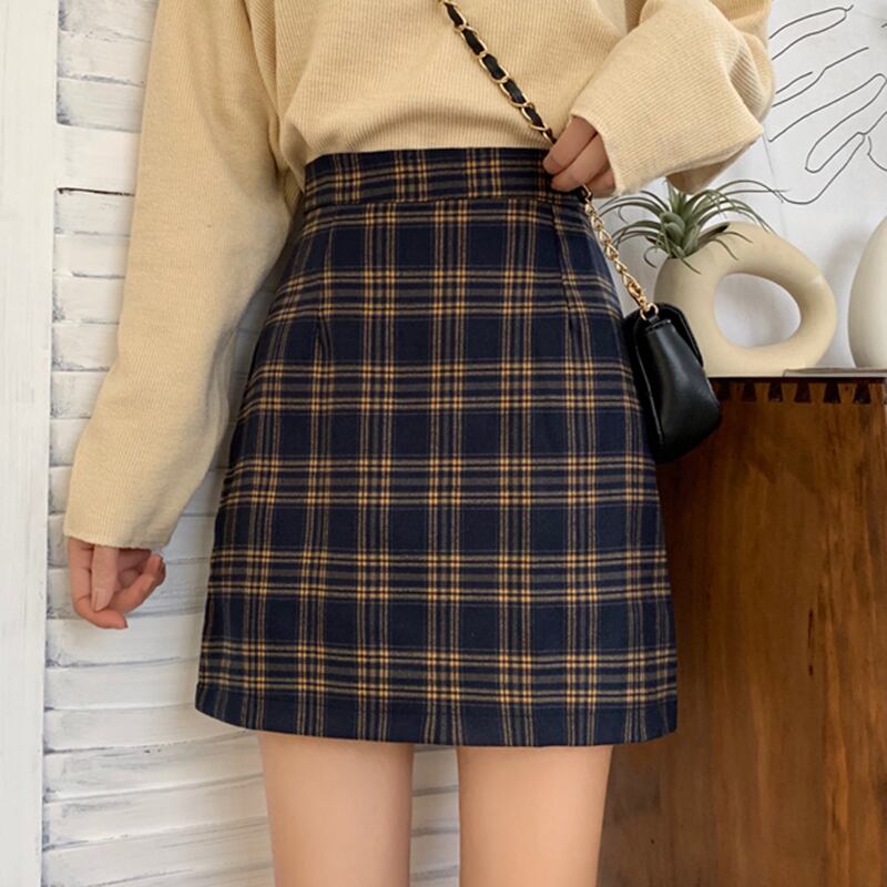 チェック柄 ハイウエスト Aライン スカート ミニ丈 ミニスカート 台形シルエット 美脚 脚長効果 カジュアル トラッド スクール調 お出かけ デート 秋 冬 RB-A09-0014