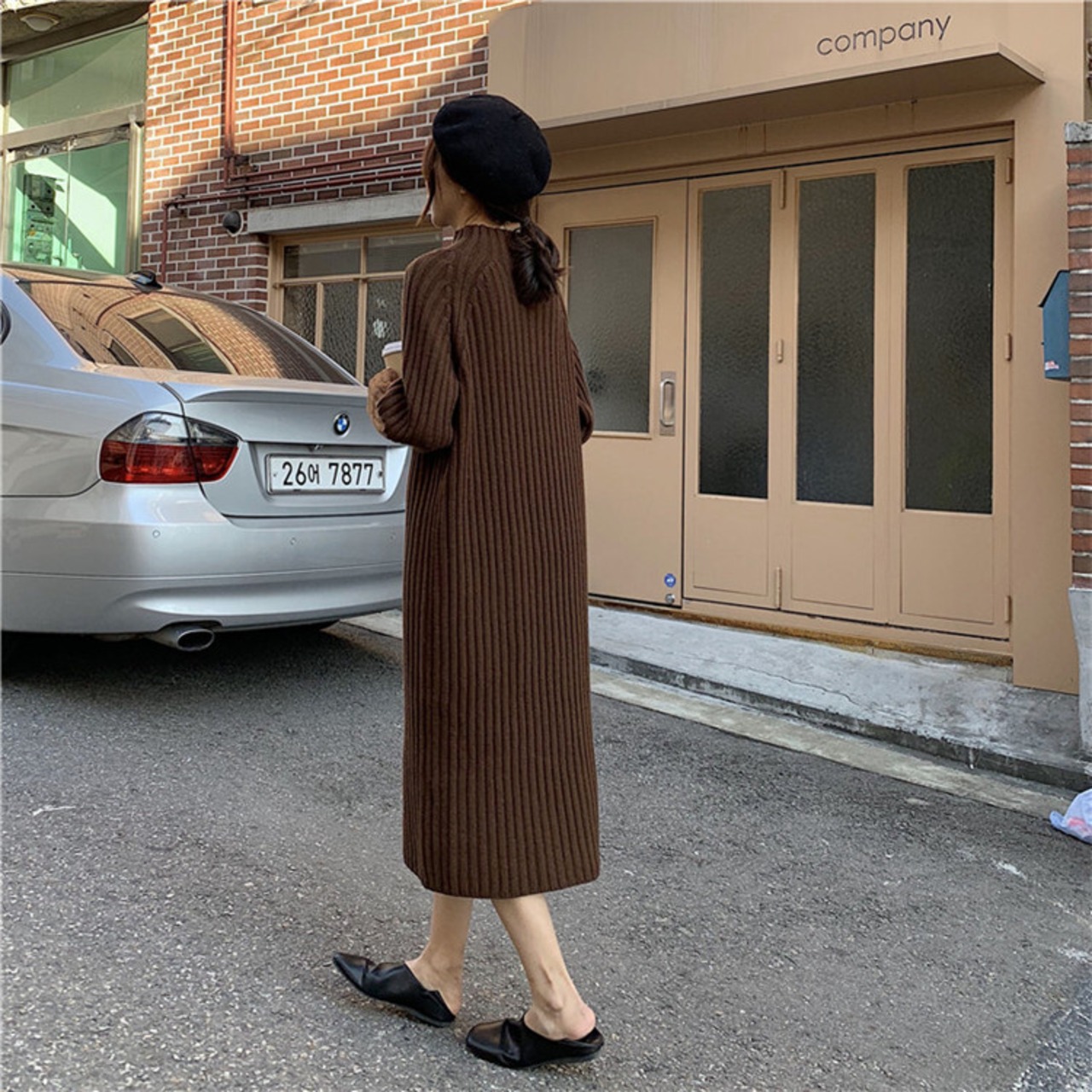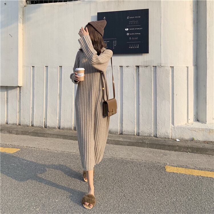 モックネック ニットワンピース 長袖 ミモレ丈 リブニット ラグランスリーブ Iライン ゆったり シンプル カジュアル ベーシック お出かけ デート 通勤 女子会 秋 冬 RB-A09-0031