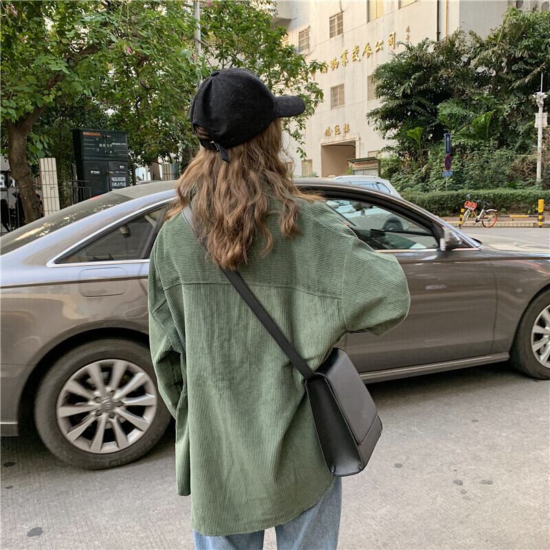 オーバーサイズ コーデュロイ シャツ 長袖 ルーズ ゆったり 羽織 シャツジャケット 無地 くすみカラー ボーイッシュ ボーイズライク シンプル お出かけ 通学 レジャー 秋 冬 RB-A09-0042