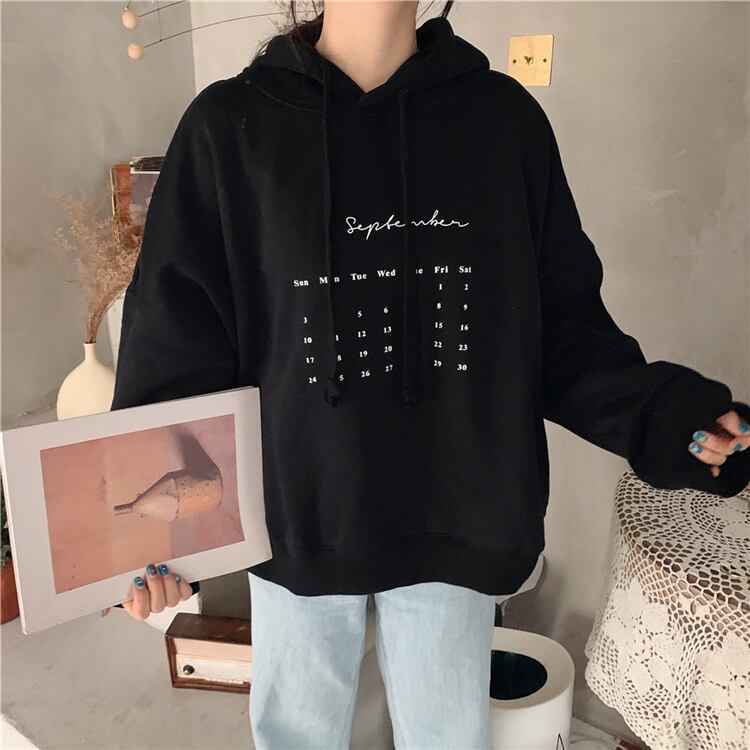 ロゴプリント フーディー オーバーサイズ ルーズ 長袖 パーカー プルオーバー カレンダー 個性的 カジュアル オシャレ ストリート リラックス 普段着 ルームウェア お出かけ スポーティー 秋 冬 RB-A09-0044