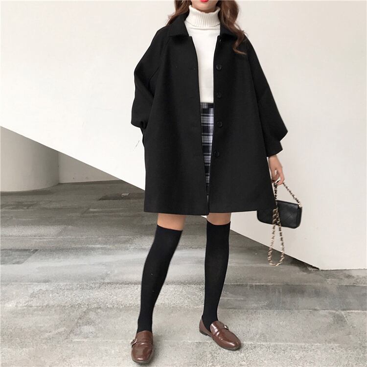 ぷっくり袖 ウール調 ハーフコート シングルボタン ラグランスリーブ Aライン 無地 シンプル きれいめ 上品 フェミニン かわいい 通勤 お出かけ デート お呼ばれ 秋 冬 RB-A09-0046