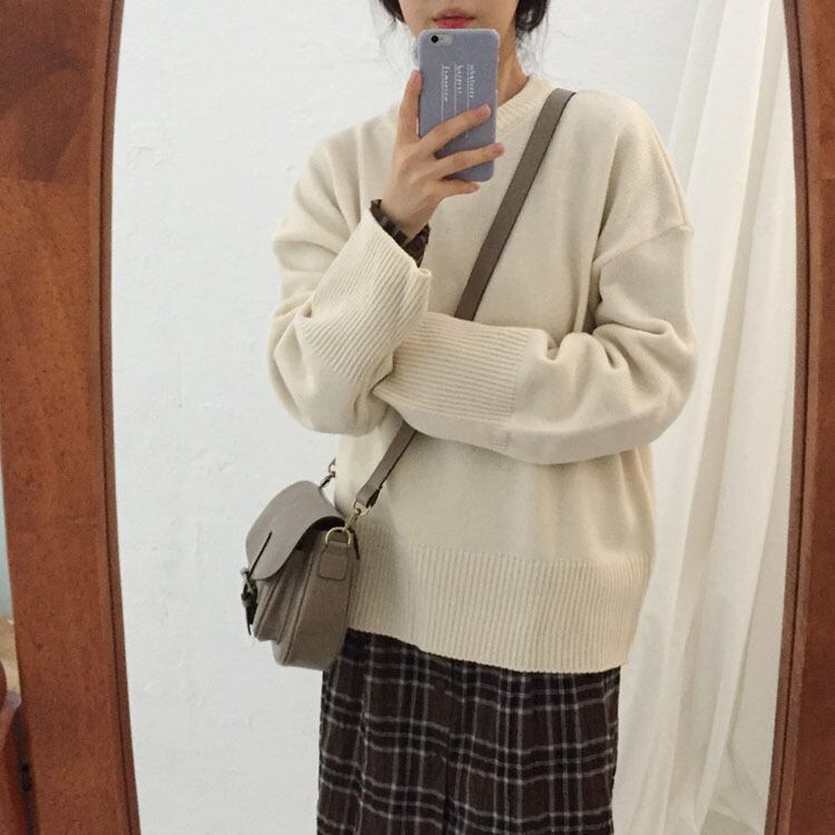 ベーシック クルーネック ニット セーター 太リブ 肩落ち ドロップショルダー ルーズ ゆったり 無地 シンプル カジュアル 着回し 通勤 オフィス お出かけ デート 通学 女子会 秋 冬 トップス RB-A09-0050