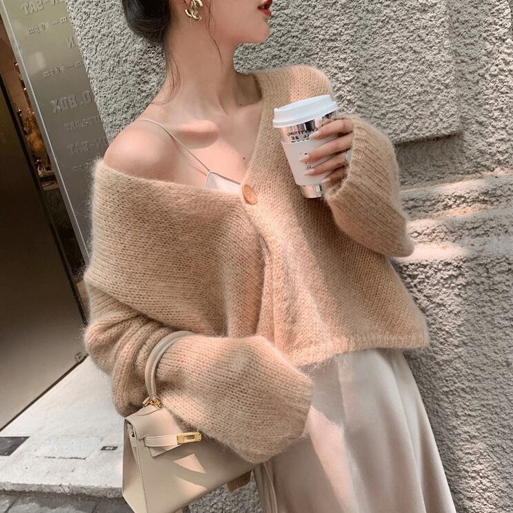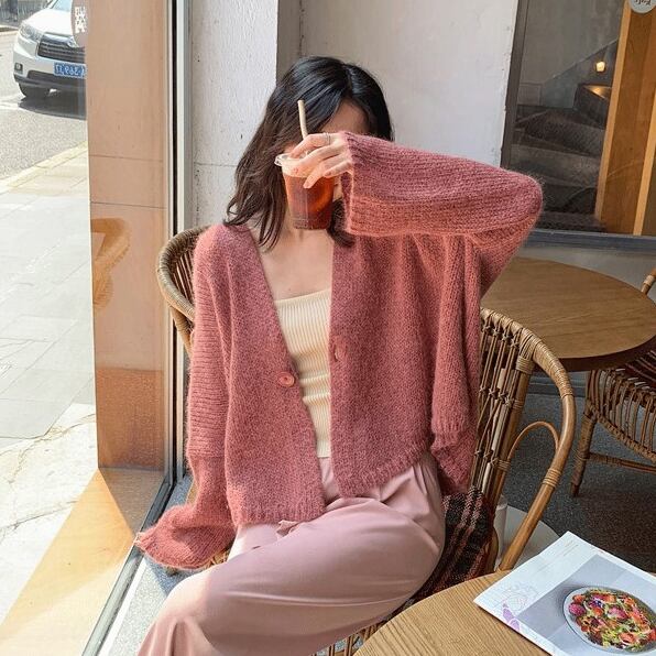 モヘア ニットカーディガン ワンボタン ショールカーディガン Vネック ゆったり ルーズ 羽織 ゆるニット ぬけ感 無地 シンプル フェミニン かわいい お出かけ デート 女子会 春 秋 RB-A09-0052