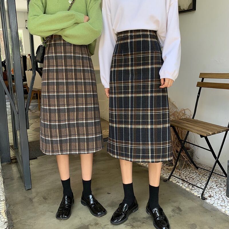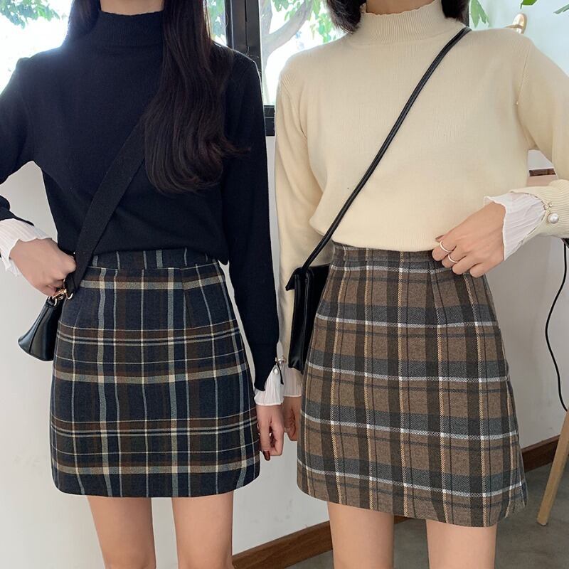 チェック柄 Aライン スカート ミニ丈 ミモレ丈 2レングス ハイウエスト 美脚 脚長効果 カジュアル トラッド シック かわいい スクール調 お出かけ デート 通勤 通学 女子会 秋 冬 RB-A09-0053