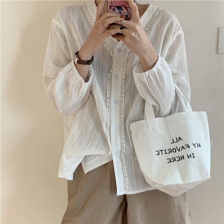 Vネック レース ブラウス シャツ 長袖 フロントボタン ルーズ ゆったり シンプル カジュアル ナチュラル ガーリー かわいい 通勤 オフィス お出かけ デート 通学 着回し 春 秋 トップス RB-A09-0061