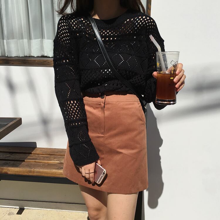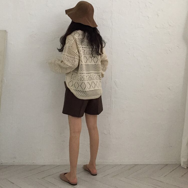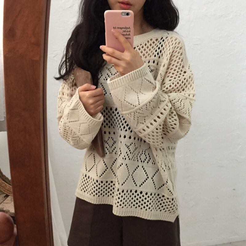 透かし模様 ルーズ ニット セーター 長袖 ラウンドネック ゆったり 透け感 ぬけ感 カジュアル ナチュラル 大人かわいい リラックス お出かけ デート デイリー 普段着 春 秋 トップス RB-A09-0065