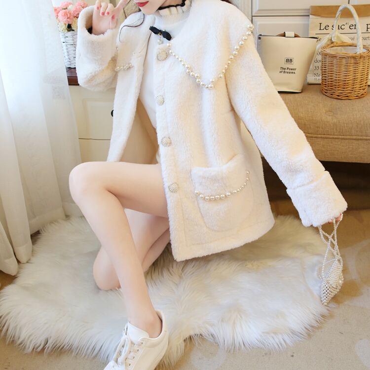 パールビーズ付き ビッグカラー ボア ハーフコート ビジューボタン シングルボタン もこもこ あたたか カラフル かわいい ガーリー お出かけ デート 秋 冬 アウター RB-A09-0075