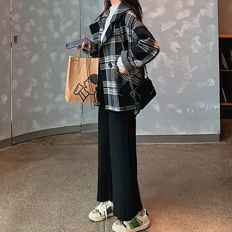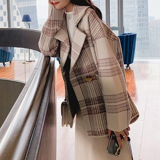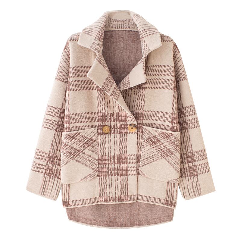チェック柄 ウール調 ハーフコート ドロップショルダー 後下がり ジャケットコート カジュアル レトロ ナチュラル 大人かわいい お出かけ デート 通勤 通学 ゆったり 秋 冬 アウター RB-A09-0076