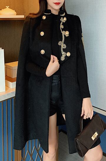マントコート ポンチョコート スタンドカラー ミモレ丈 装飾 ゴージャス エレガント クラシカル レトロ 個性的 オシャレ お出かけ デート イベント パーティー 秋 冬 アウター RB-A09-0083