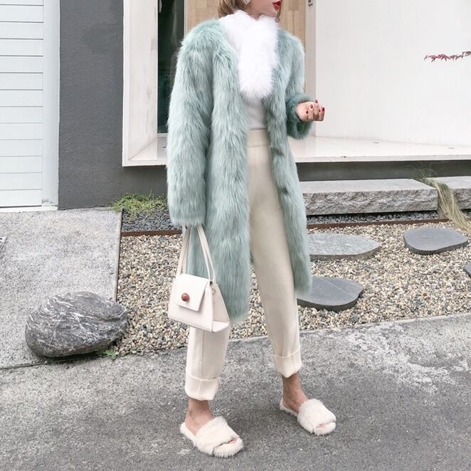 エコファー ノーカラーコート Vネック ミモレ丈 フェイクファー 無地 ミントグリーン ペールトーン シャーベットカラー トレンド シンプル かわいい エレガント 上品 お出かけ デート 冬 アウター RB-A09-0088