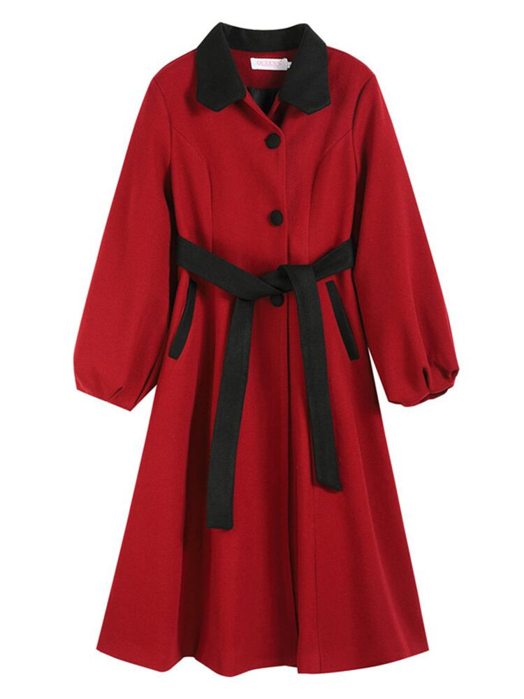 バイカラー ウール調 コート ミモレ丈 ウエストベルト ボリューム袖 クラシカル レトロ ガーリー 大人かわいい 女優 映画 お出かけ デート お食事会 イベント 秋 冬 アウター RB-A09-0091