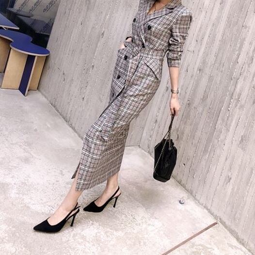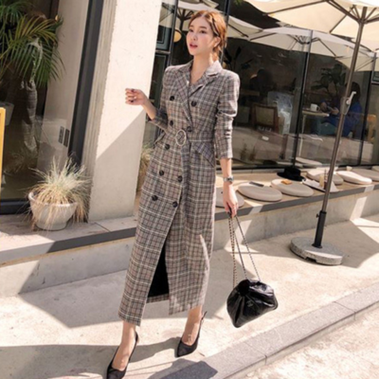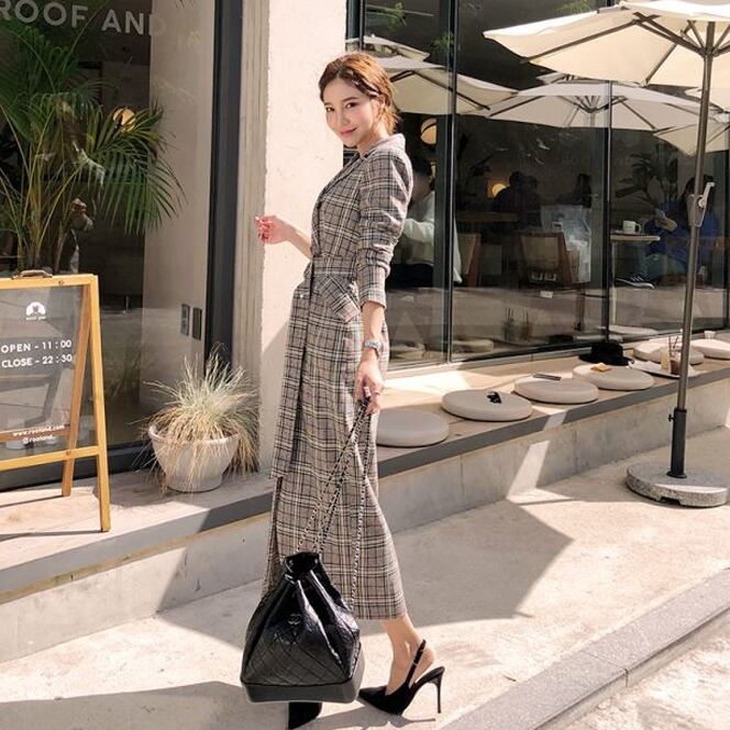 グレンチェック柄 ダブルボタン ロングコート ウエストベルト スリム クラシカル レトロ トラッド 大人カジュアル お出かけ デート 女子会 秋 冬 アウター RB-A09-0095