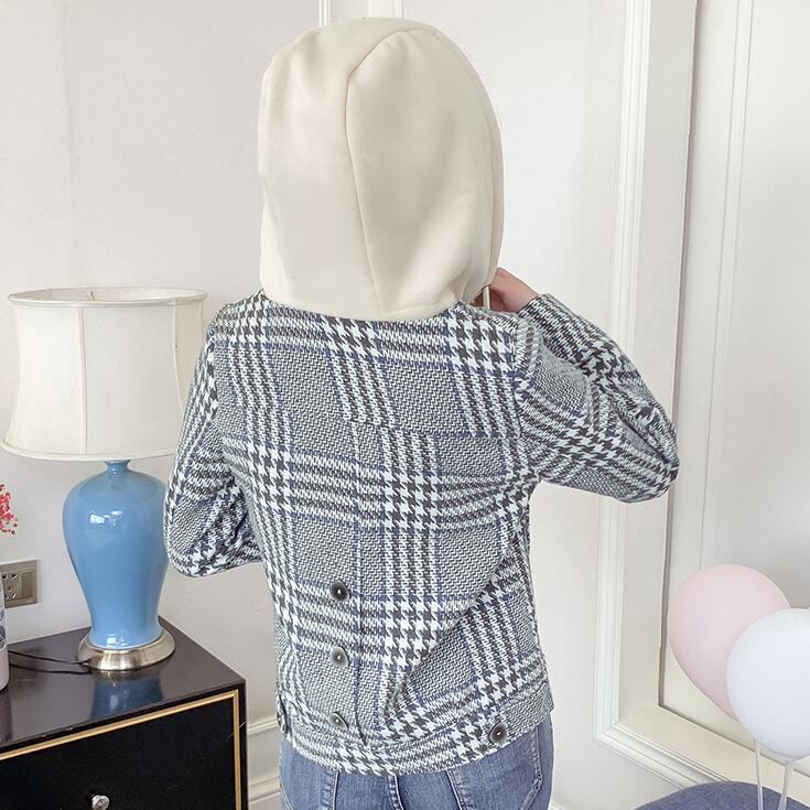 千鳥格子 チェック柄 ショート丈 フード付き ジャケット コート ウール調 ジップアップ ショートコート カジュアル レトロ シック お出かけ デート 大人かわいい コンパクト 秋 冬 アウター RB-A09-0100