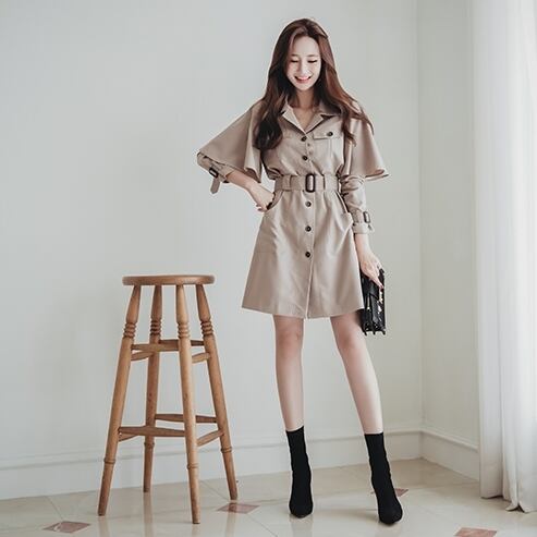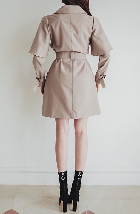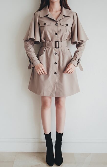トレンチコート 袖フリル シングルボタン ベルト ハーフ丈 ワークテイスト 無地 クラシカル エレガント きれいめ 個性的 デザインコート オシャレ 通勤 お出かけ デート 女子会 春 秋 アウター RB-A09-0105