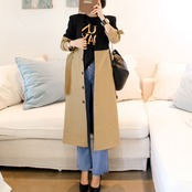 バイカラー ロング チェスターコート ウエストベルト シングルボタン スリム シンプル マニッシュ カッコいい 大人女子 きれいめ 通勤 お出かけ デート 女子会 秋 アウター RB-A09-0108