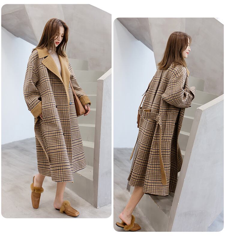 ウール調 レトロ チェック柄 ロング チェスターコート ロング丈 ウエストベルト ダブルボタン トラッド シック 大人カジュアル 英国調 きれいめ あたたか ゆったり 通勤 デート 女子会 秋 冬 アウター RB-A09-0114