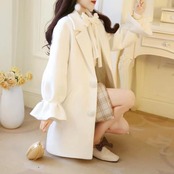 チェスターコート ウール調 ミディ丈 キャンディスリーブ ドロップショルダー ゆったり ビジューボタン デザインボタン パールビーズ 無地 ガーリー 大人かわいい 甘め フェミニン お出かけ デート 秋 冬 アウター RB-A09-0116
