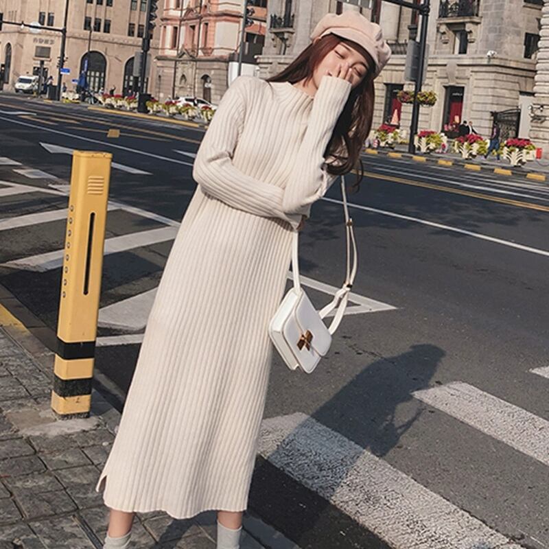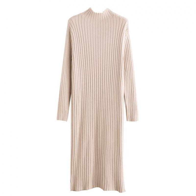 ニットワンピース 秋 冬 エレガント きれいめ 30代 40代 50代 リブニット ハイネック 長袖 ミモレ丈 ゆったり 体型カバー シンプル カジュアル デート お出かけ 女子会 RB-A10-0003