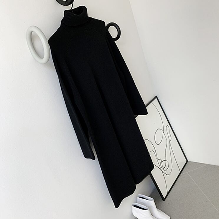ニットワンピース 秋 冬 エレガント きれいめ 30代 40代 50代 タートルネック ラグランスリーブ 長袖 ロング丈 深スリット ロングニット セーター レイヤード 重ね着 無地 シンプル スタイリッシュ オシャレ 通勤 オフィス デート 女子会 体型カバー RB-A10-0033