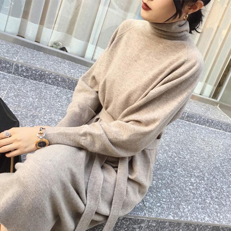 ニットワンピース 秋 冬 エレガント きれいめ 30代 40代 50代 ハイネック 長袖 ロング丈 ウエストリボン ラグランスリーブ ゆったり 無地 体型カバー シンプル 上品 通勤 オフィス デート 女子会 RB-A10-0042