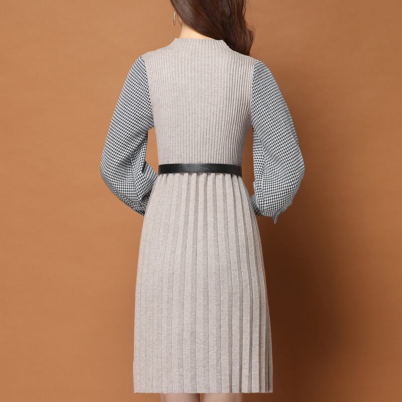 ニットワンピース 秋 冬 エレガント きれいめ 30代 40代 50代 フェイクレイヤード シャツ袖 ボトルネック 長袖 プリーツ ひざ丈 切替 シック フェミニン 通勤 オフィス お出かけ デート お呼ばれ RB-A10-0044