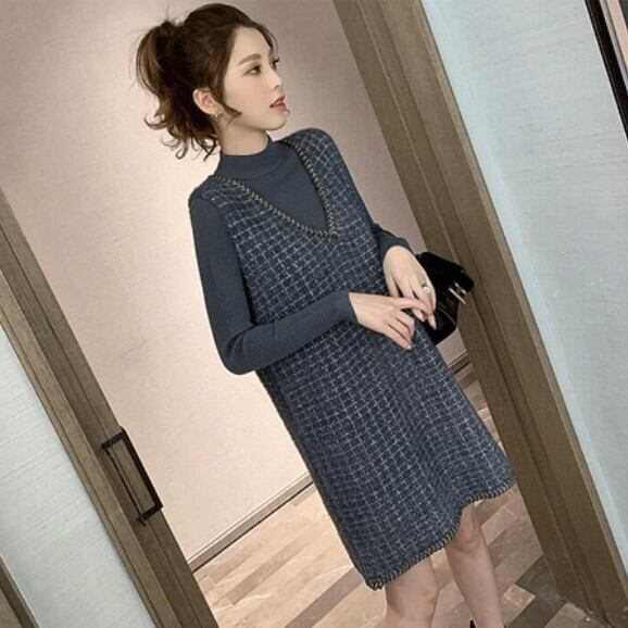 ニットワンピース 秋 冬 エレガント きれいめ 30代 40代 50代 セットアップ ボトルネック 長袖 ニット セーター Vネック ジャンバースカート ノースリーブ ひざ上丈 チェック柄 シック オシャレ 上品 お出かけ デート お呼ばれ RB-A10-0055