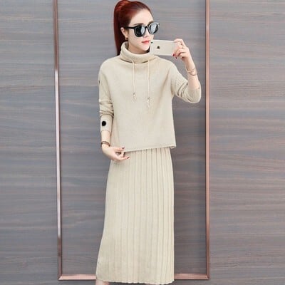 ニットワンピース 秋 冬 エレガント きれいめ 30代 40代 50代 セットアップ ツーピース ワンピース 長袖 ラウンドネック ミモレ丈 ニットベスト タートルネック 無地 フェミニン 上品 シック デート お出かけ お呼ばれ お食事会 RB-A10-0062