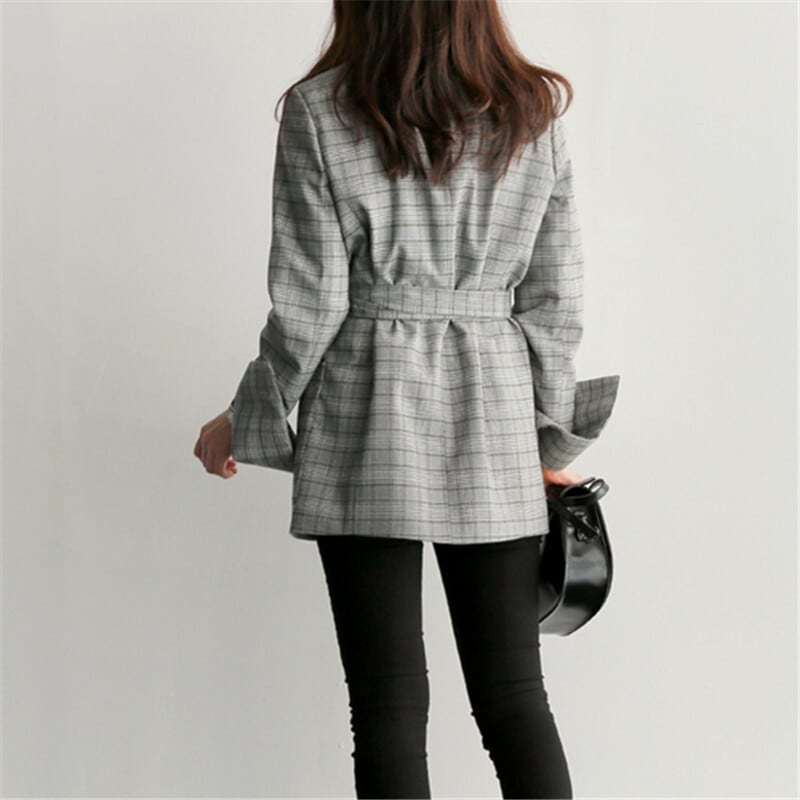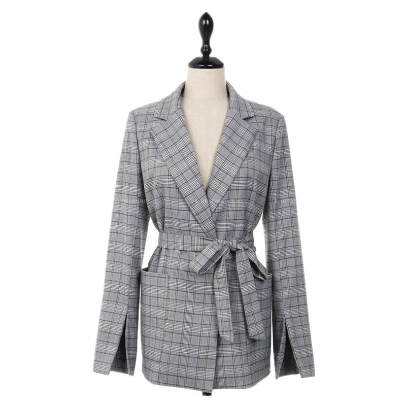 テーラードジャケット ウエストリボン チェック柄 襟付き 大人かわいい 個性的 上品 体型カバー RB-K09-0070