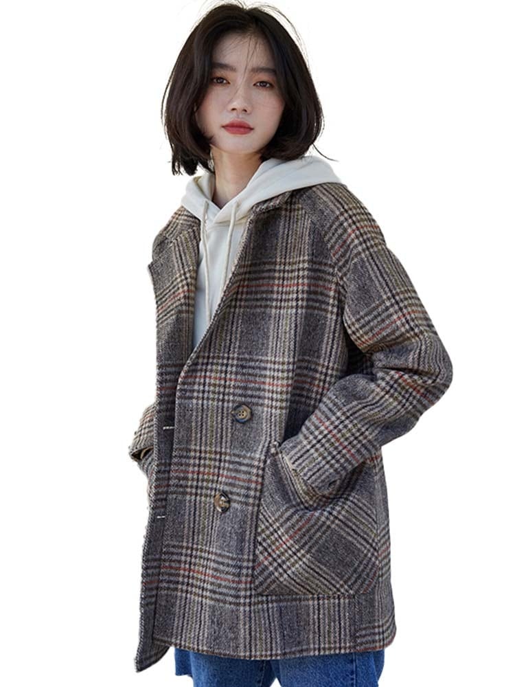 テーラードジャケット チェック柄 フードつき グレンチェック アウター 大人かわいい ダブルジャケット プチプラ クラシカル RB-K09-0087